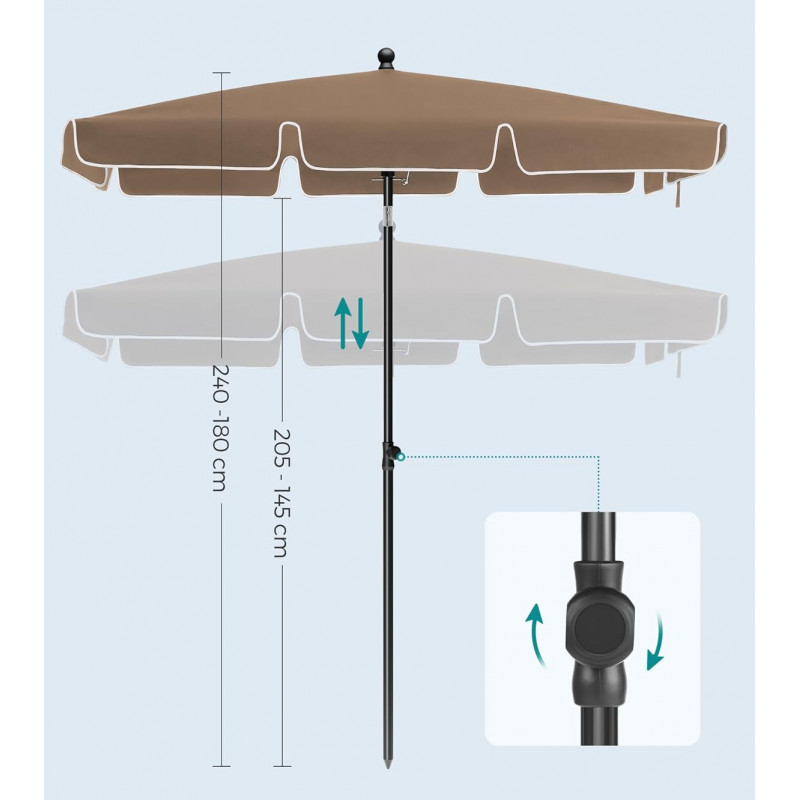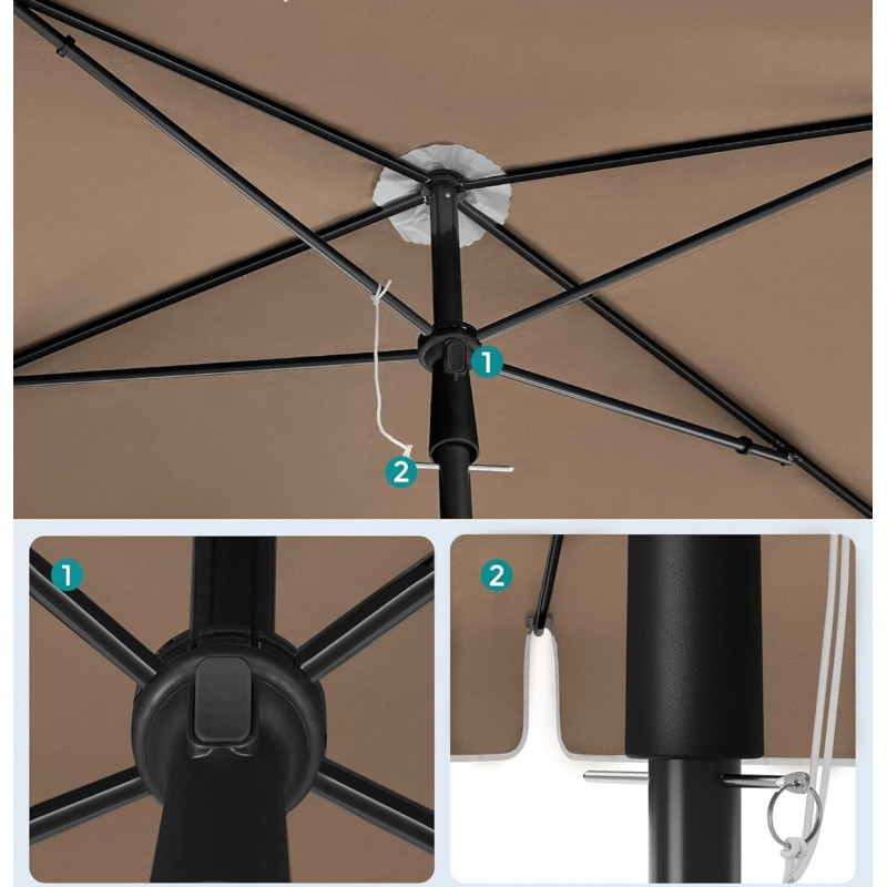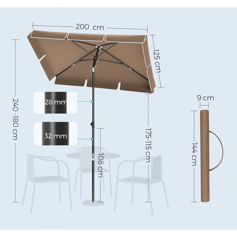 Scurta descriere Umbrela SONGMICS este ideala pentru a crea rapid o zona de umbra confortabila in aer liber. Poate fi ajustata pe inaltime si inclinata in functie de pozitia soarelui, oferind protectie eficienta pe tot parcursul zilei. Materialul rezistent protejeaza impotriva razelor UV si a ploii usoare, fiind potrivita pentru gradina, terasa sau plaja.