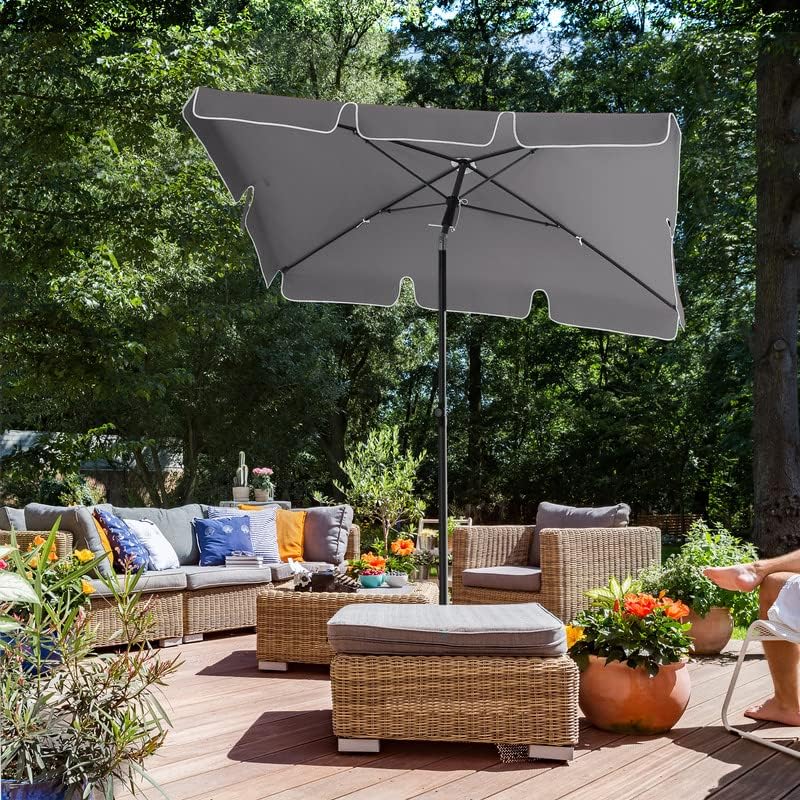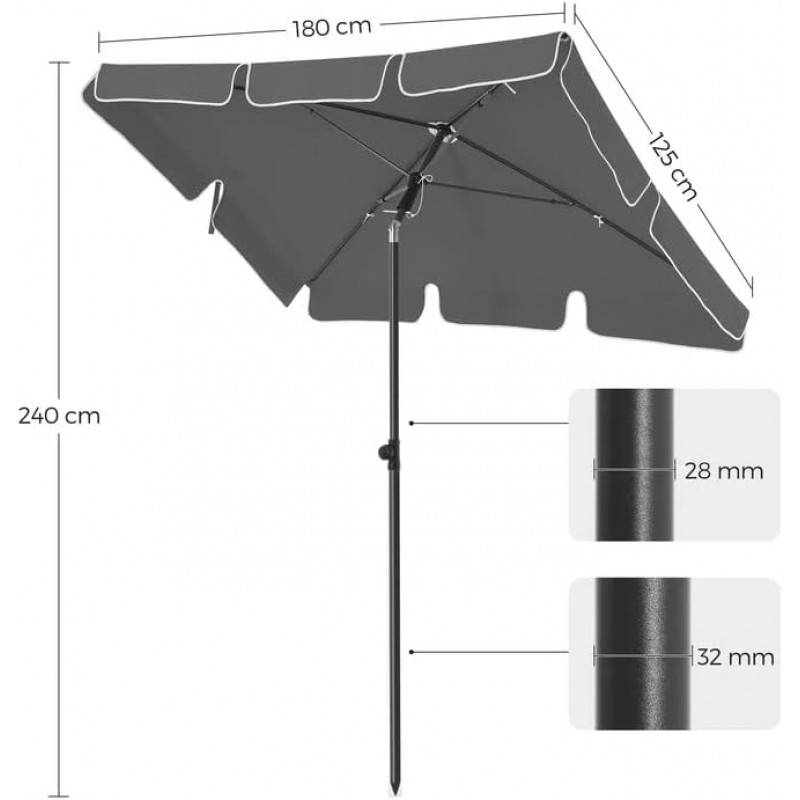 Scurta descriere Umbrela SONGMICS este ideala pentru a crea rapid o zona de umbra confortabila in aer liber. Datorita functiei de reglare pe inaltime si inclinare, o poti ajusta usor in functie de pozitia soarelui. Materialul rezistent ofera protectie eficienta impotriva razelor UV si a ploii usoare, fiind potrivita pentru gradina, terasa sau balcon.