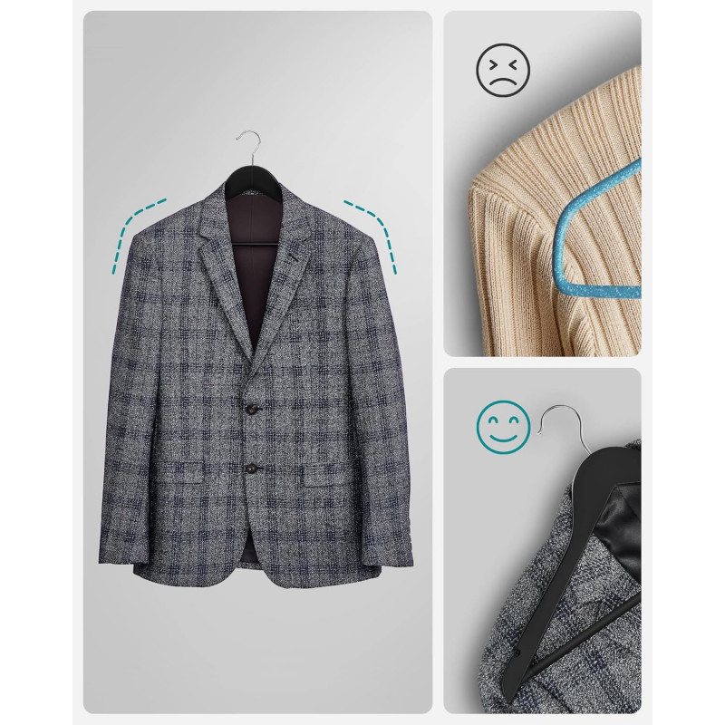 Scurta descriere: Umerasele din lemn SONGMICS CRW02 B-20 sunt alegerea ideala pentru pastrarea impecabila a hainelor. Fabricate din lemn de artar solid si finisate manual, aceste umerase sunt prevazute cu carlige rotative, decupaje antialunecare si bara pentru pantaloni. Forma curbata urmeaza linia umerilor, prevenind deformarea materialelor, iar structura solida permite sustinerea chiar si a hainelor grele, cum ar fi sacourile sau gecile de iarna.