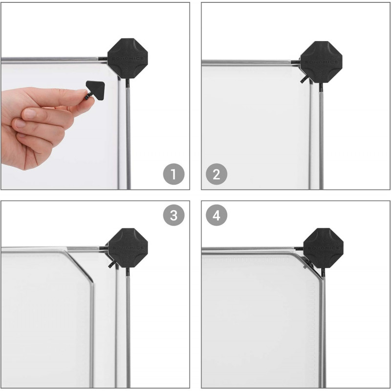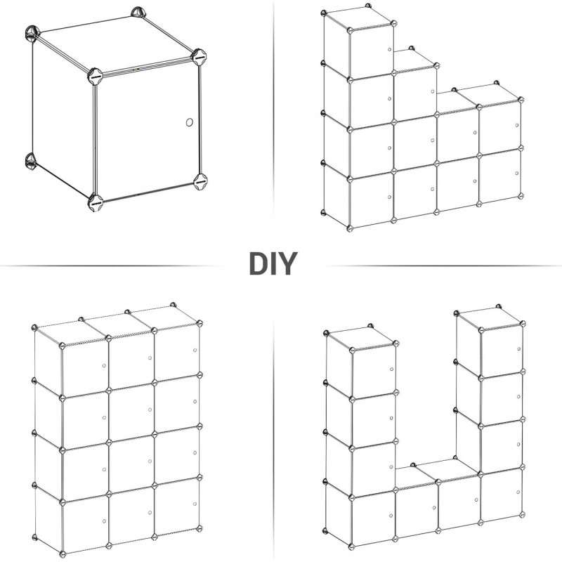 Capacitate totala de incarcare statica: 80 kg Despre acest articol Doriti sa depozitati hainele, pantofii sau jucariile intr-un mod organizat. Deschideti usile si asezati articolele in fiecare compartiment mare de 30 x 30 x 30 cm. Un sistem de rafturi in subsol, sub scari sau in pod? Puteti construi acest raft DIY in diferite forme pentru a profita la maximum de spatiu.Intr-un raft deschis, masinutele de jucarie cad repede si praful se acumuleaza pe hainele tale. Datorita carligelor mici incorporate, usile acestui sistem de rafturi raman intotdeauna inchise.Panourile din plastic rezistent la apa ale acestui dulap pot fi usor sterse cu o carpa umeda. Doriti sa transportati acest dulap? Tot ce trebuie sa faceti este sa-l dezasamblati, toate piesele dulapului sunt super usoare.Distreaza-te asambland acest raft pentru pantofi! Va oferim un ciocan mic si