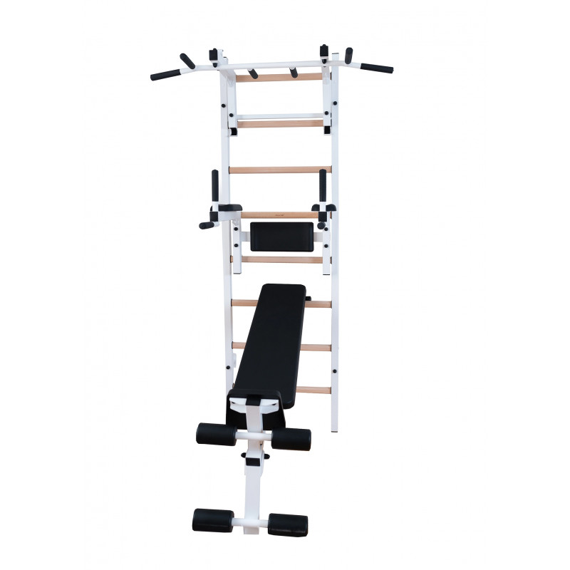 Spalier BenchK 233W, cu bara de tractiuni convertibila cu 6 manere si banca antrenament,@ideal pentru antrenamentul abdomenului, spatelui si bratelor.Spalierele de perete profesionale, concepute cu intenția de a vă economisi timp și spațiu. Realizat cu atenție la detalii și design minimalist elegant, acest echipament multifuncțional se potrivește perfect stilului tău de viață aglomerat. Completează o locuință, un birou sau o instituție publică.Spalierele de perete BenchK se potrivesc perfect într-o locuință modernă, dar respectă și standardele UE de siguranță pentru echipamentele profesionale de gimnastică. Sunt certificate pentru utilizare în instituții publice, inclusiv săli de sport profesionale, centre de antrenament al forțelor armate, hoteluri, școli, spitale și multe altele.Acest instrument de exerciții versatil oferă un antrenament complet cu greutatea corporală, cu o gamă largă de opțiuni de exerciții - flexia și extensia coloanei vertebrale, mobilitate articulară, antrenament de forță, condiționare de bază, întindere, picioare, cardio, antrenament TRX și multe altele.BenchK acordă atenție celor mai mici detalii – suduri, mânere sau șuruburi. Totul este făcut pentru a rezista și a fi savurat toată viața.Accesorii:Bară de tracțiune din oțel reglabilă cu 6 mânere, care poate fi folosită ca suport pentru spate, bancă de antrenament.Bara de tractiune are cârlige căptușite cu pâslă pentru a preveni marcarea treptelor din lemn. Datorită construcției sale detașabile, bara de tragere poate fi poziționată pe diferite trepte și ajustată la înălțimea utilizatorului. Bara de tractiune are șase mânere anti-alunecare, ceea ce permite o gamă largă de tipuri diferite de trageri, precum și exerciții de condiționare a miezului, spatelui și umerilor.Când este rotit cu 90 de grade, poate fi folosit ca suport pentru spate.Cotierele stației cu bară de scufundare și suportul pentru spate sunt realizate din spumă poliuretanică integrală. Acest lucru le garantează durabilitatea, ușurința de curățare și aspectul modern.Atât bara de scufundare, cât și bara de tractiune pot fi ajustate la înălțimea utilizatorului sau pot fi îndepărtate complet, dacă este necesar.Bancă reversibilă cu scaun suplimentar și patru role de sprijin pentru picioare. Suportul pentru spate, scaunul suplimentar și rolele de susținere a picioarelor sunt realizate în întregime din poliuretan (PU) fără a folosi piele sintetică sau spumă. Banca permite o varietate de exerciții abdominale, variații de apăsare cu mrenă sau exerciții cu gantere.@