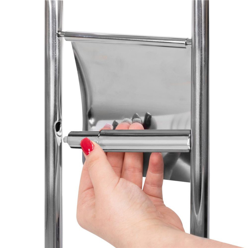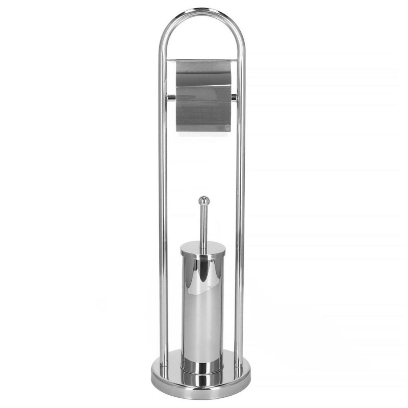Peria de toaleta de sine statatoare cu suport integrat pentru role este realizata din materiale de cea mai buna calitate. Suportul argintiu arata ingrijit si va functiona in multe stiluri de baie. Standul are o baza stabila. Totul este usor, dar si foarte stabil. Datorita greutatii sale reduse, puteti schimba cu usurinta pozitia standului. In interiorul recipientului se afla un capac sub forma unui recipient detasabil care colecteaza apa care picura. Datorita acestui lucru, puteti pastra cu usurinta si rapid baia curata. Standul a fost realizat intr-un stil clasic, cu o combinatie de tehnologii moderne. Perfect pentru fiecare gospodarie. Un avantaj suplimentar al acestui produs este peria inlocuibila - daca este necesar, poate fi desurubata si inlocuita cu una noua.Un sistem special de asezare a hartiei igienice pe suport garanteaza ca aceasta va fi aranjata stabil. In plus, schimbarea rolei este foarte usoara si rapida. Avantajele suportului pentru hartie si perie: Calitate superioara Un produs 2 in 1 care va permite sa economisiti spatiu in baie Peria poate fi inlocuita Recipient de colectare a apei in recipientul cu perie Aspect modern Sistem simplu de expansiune care va permite sa inlocuiti rolele de hartie Baza groasa, stabila Parametri :Material: metal