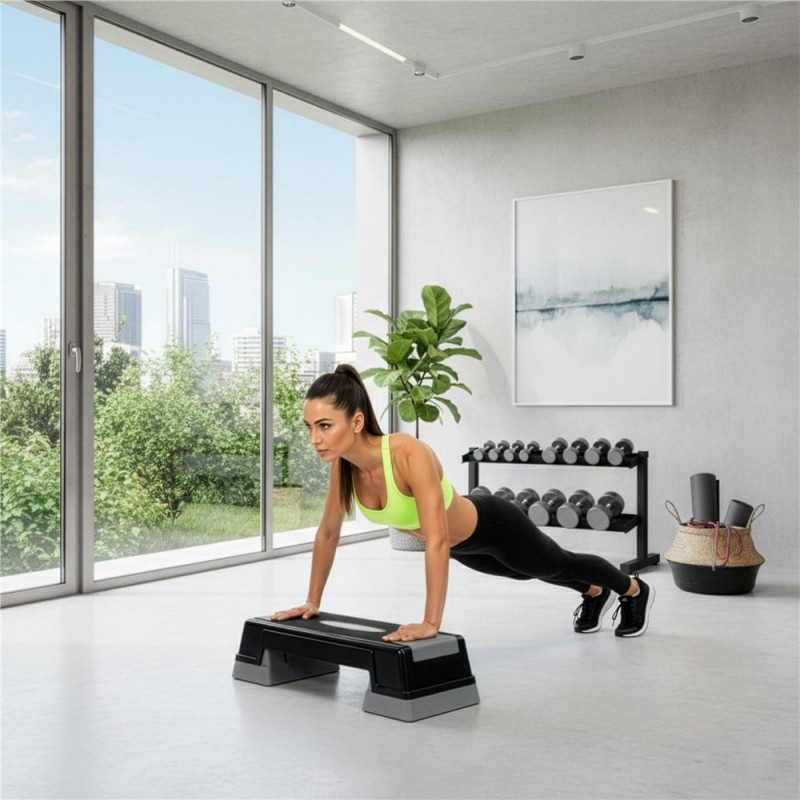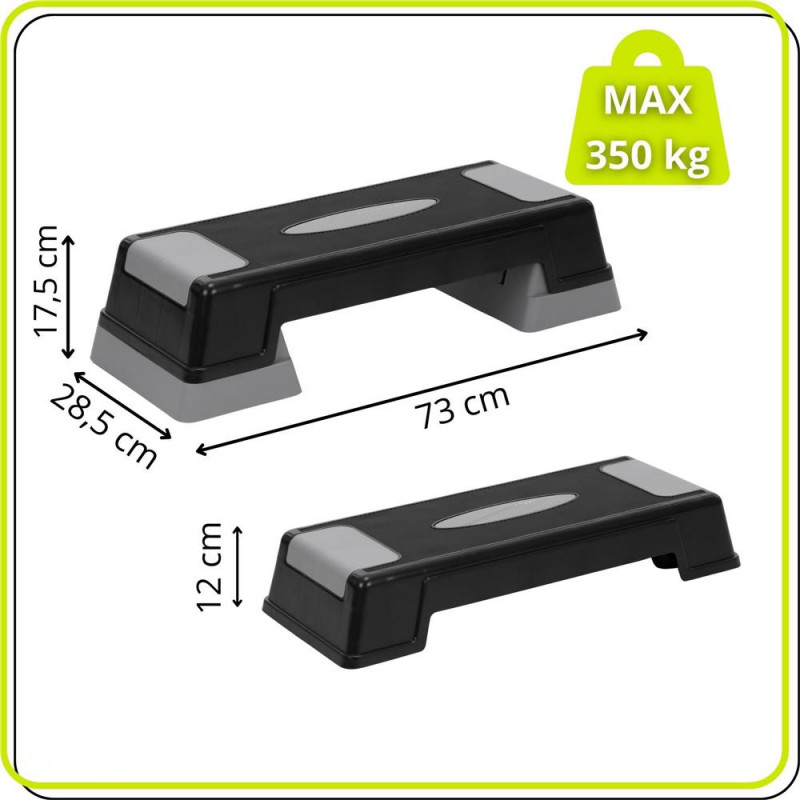 Scurta descriere Step-ul aerobic reglabil este ideal pentru antrenamente cardio, exercitii de tonifiere si sesiuni de fitness acasa sau in sala. Constructia din PP rezistent suporta pana la 350 kg, oferind stabilitate si siguranta in timpul utilizarii. Cele doua niveluri de inaltime permit ajustarea intensitatii antrenamentului.