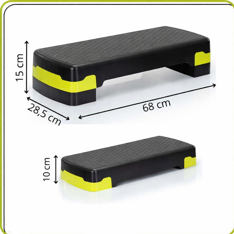 Scurta descriere: Step aerobic reglabil, proiectat pentru antrenamente sigure si eficiente. Permite ajustarea inaltimii in doua niveluri, in functie de intensitatea dorita. Suprafata antiderapanta asigura stabilitate buna, iar protectiile din cauciuc contribuie la protejarea podelei in timpul utilizarii.
