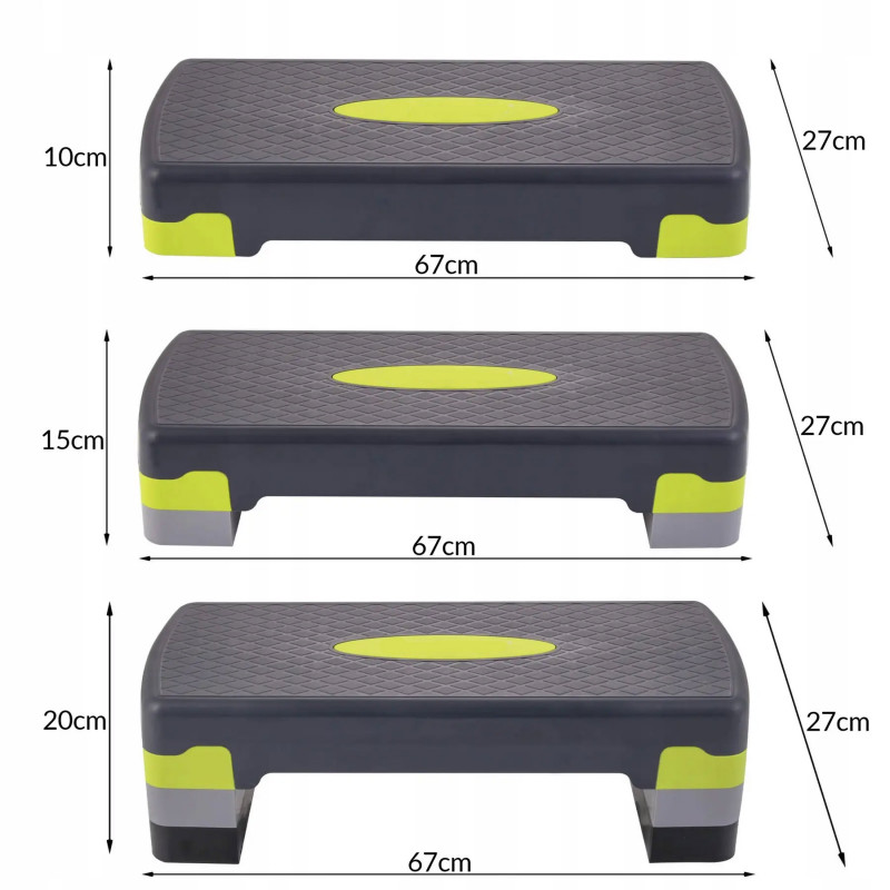 Stepperul de fitness cu covoras iti permite sa te antrenezi acasa sau in cluburi de fitness. Produsul are o structura durabila si stabila care asigura confort si siguranta in timpul exercitiului. Reglarea inaltimii in 3 etape il face perfect potrivit pentru mai multe tipuri de exercitii. Pentru o mai mare siguranta si stabilitate a Stepperului in timpul exercitiilor, platforma are o suprafata antiderapanta. Capacele de cauciuc previn deplasarea nedorita a Stepperului. Adaugarea unui covoras garanteaza o aderenta si mai buna a produsului la sol.Parametri:Culoare: nuante de gri si verde