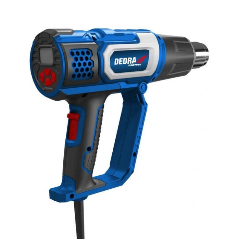 - Pistolul termic are doua puteri de incalzire si reglarea temperaturii (60°C si 60-600°C) si a debitului de aer, permitandu-ne sa alegem si mai bine temperatura potrivita in functie de tipul de lucru efectuat