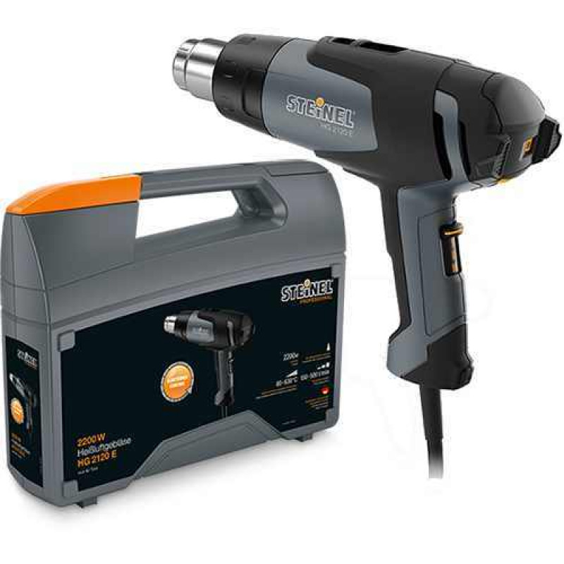 Suflanta de 2200-W HG 2120 E este potrivita pentru numeroase locuri de muncă în atelier și pe șantierele de construcții.Temperatura generata de elementul de incalzire ceramic poate fi infinit variata într-un interval de 80-630 ° C de la butonul de reglare.Fluxul de aer poate fi controlat în 3 etape: 150-500 l / min.