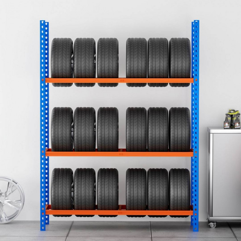 Suport de perete pentru 18 anvelope, 1500 x 450 x 1980 mm, max 300 kg, 3 rafturi