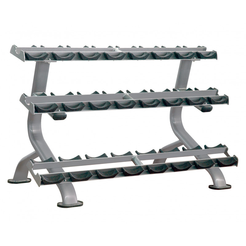 Suportul IT 7012 ofera posibilitatea de depozitare a 24 de gantere rotunde. Fiecare loc de depozitare este prevazut cu suporturi pentru stabilizarea ganterelor, aranjate crescator (in partea de jos ganterele mari, iar in partea superioara gantere mici) pentru a spori siguranta.Unghiul de inclinare este de 30 de grade ceea ce faciliteaza manipularea.Cadrul este din otel rezistent la tensiune.Dimensiune produs: 158 x 81,4 x 98,2 cmGreutate produs: 71 kgProducator: Impulse Fitness@ @ @Acest produs face parte din seria IT.Seria IT@– Simpla. Intuitiva. Diferita. Aceasta linie se caracterizeaza prin calitate si diversitate. Ofera 50 de feluri diferite pentru desfasurarea oricarui tip de antrenament, de la cele ale incepatorilor, la cele ale atletilor de elita.