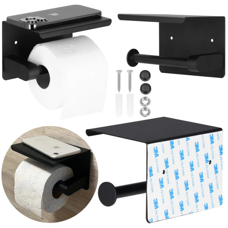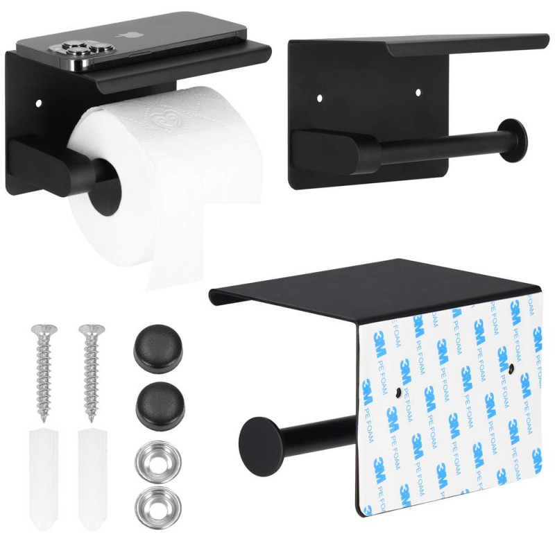 setul include banda 3 M, perfect adaptata la suprafata de montare si doua suruburi (25 mm lungime) cu capace negre - pentru montare in perete. In orice baie, este important sa pastram lucrurile ingrijite si ordonate si sa ne asiguram ca fiecare dintre numeroasele accesorii pastrate acolo isi au locul. Suportul nostru de hartie igienica, in culoarea neagra clasica, universala si foarte la moda in prezent, va fi un accesoriu perfect pentru baia dvs., care isi va face bine treaba si va fi un accesoriu de baie elegant.