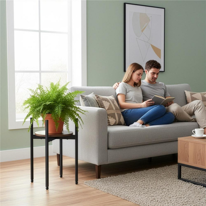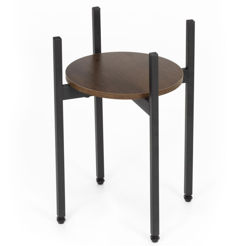 Scurta descriere: Suport compact cu polita rotunda din MDF si structura metalica stabila, potrivit pentru plante, decoratiuni sau obiecte de uz zilnic. Designul simplu si dimensiunile reduse il fac ideal pentru spatii mici, iar picioarele reglabile permit stabilizarea pe suprafete denivelate.