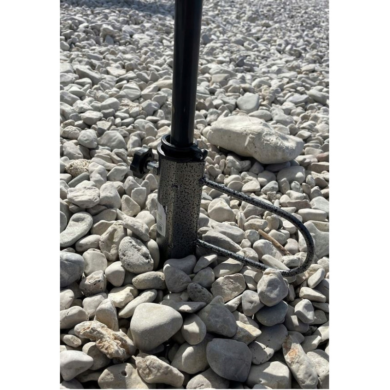 Scurta descriere: Baza metalica pentru parasolar este solutia ideala pentru fixarea rapida si sigura a umbrelelor in nisip, sol sau gradina. Fabricata din otel durabil si prevazuta cu surub de strangere si maner ergonomic, permite montarea stabila a tijelor cu diametrul intre 25 si 35 mm. Perfecta pentru plaja, camping sau curte.