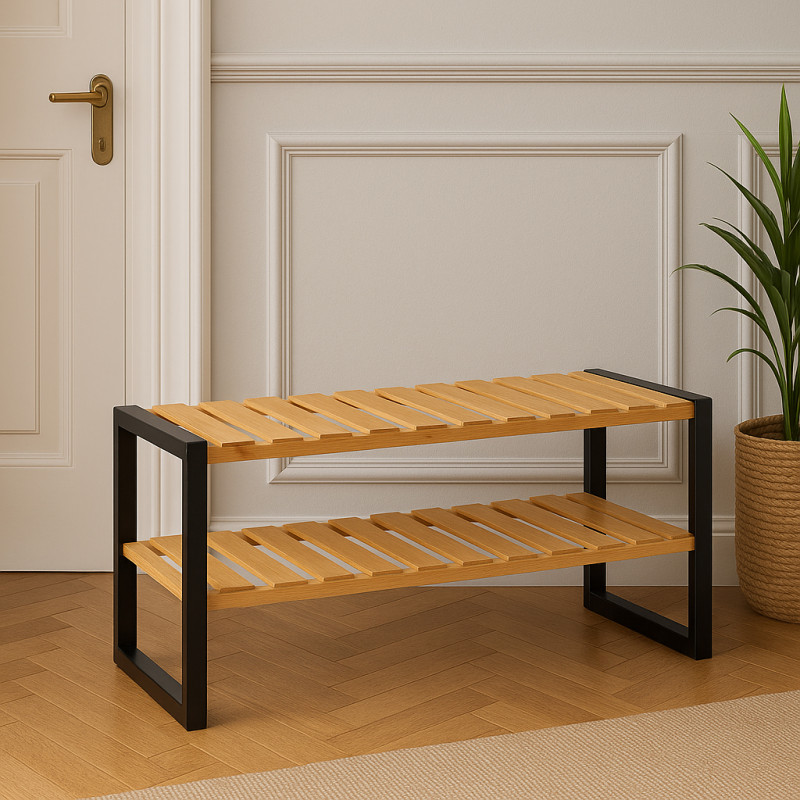 Scurta descriere Acest suport compact pentru pantofi de la 5 Five permite organizarea a pana la 6 perechi de incaltaminte. Fabricat din bambus durabil si finisat in culoare neagra eleganta, este ideal pentru holuri sau dressinguri moderne. Structura sa stabila si designul empilabil il fac potrivit pentru spatii mici sau utilizare modulara.