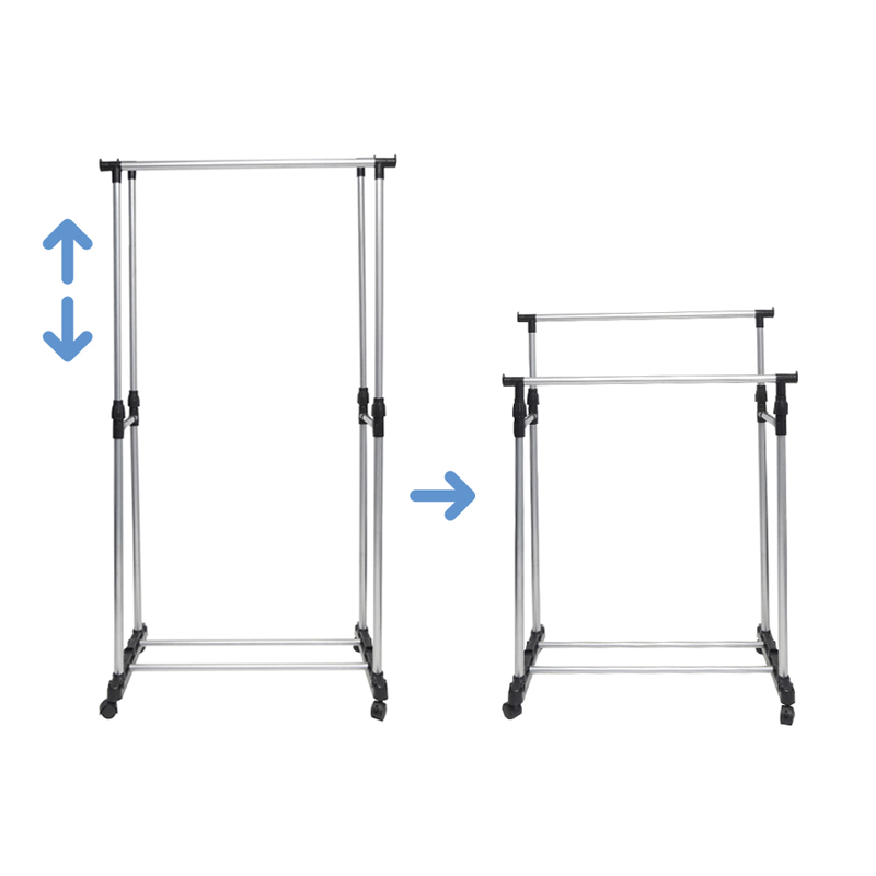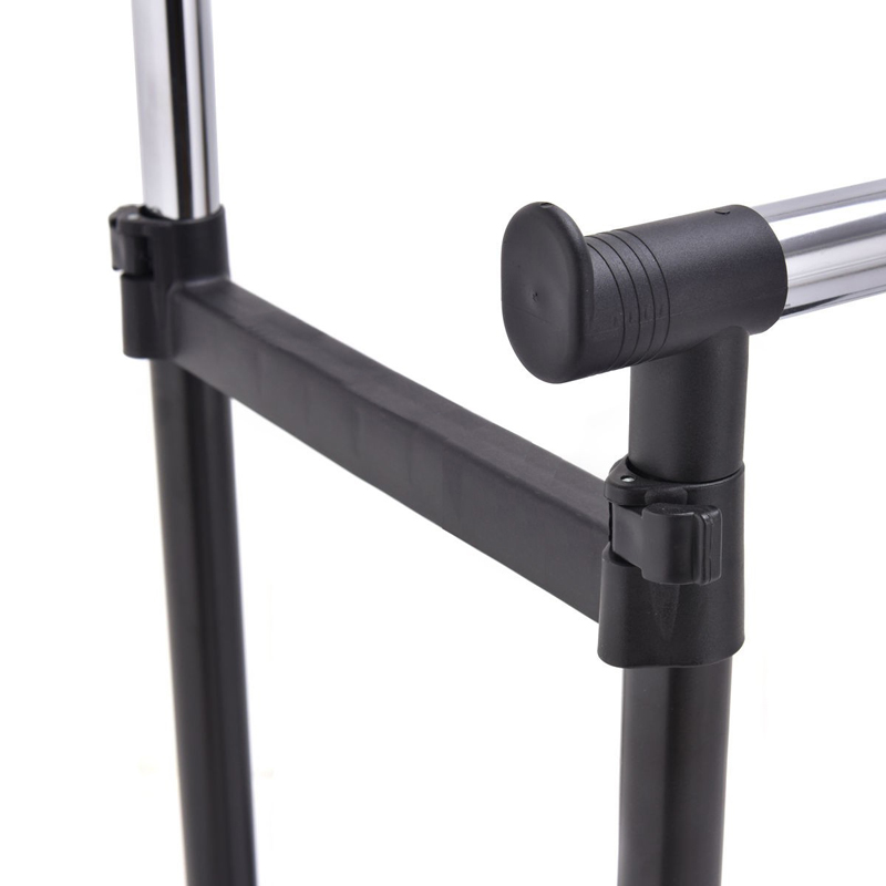 Solid si rezistent: Fabricat din tuburi de otel solid si sustinut de rotile rezistente, acest suport de haine este suficient de puternic pentru a sustine pana la 90 kg. Asa ca nu ezitati sa va agatati jachetele de iarna!Mult spatiu de depozitare: Cele doua sine de agatat ofera mult spatiu pentru a va atarna hainele si pentru a le pastra usor accesibile. Barele transversale laterale pot agata genti, palarii, esarfe si alte accesorii.Convenabil de mutat: Cu 4 roti universale, dintre care 2 sunt blocabile, puteti muta cu usurinta aceasta bara de haine rezistenta din dormitor pana in vestiar si o puteti bloca la locul ei daca este necesar.