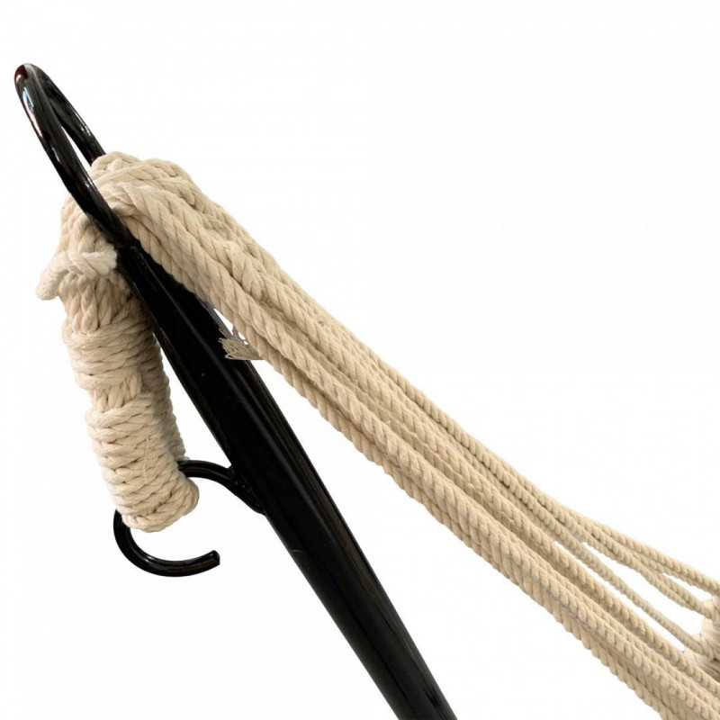 La capatul bratelor sunt prevazute inele prin care trece capetele de prindere de la hamac.