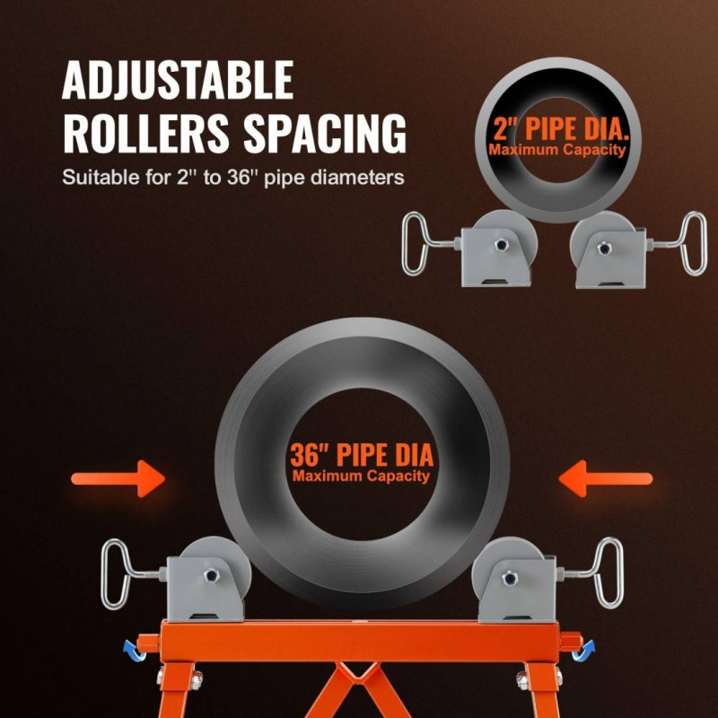 suportul pentru tevi cu cap rulant! Baza triunghiulara asigura un sprijin