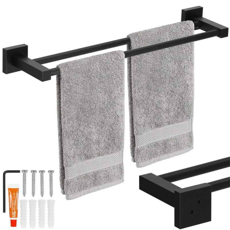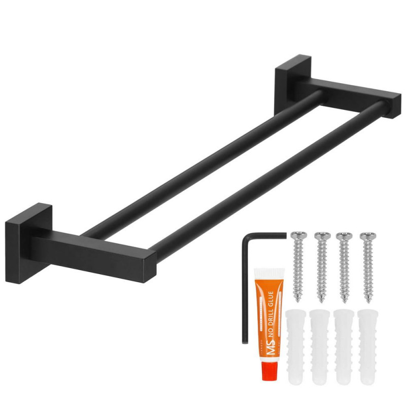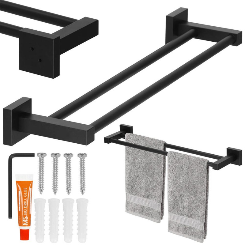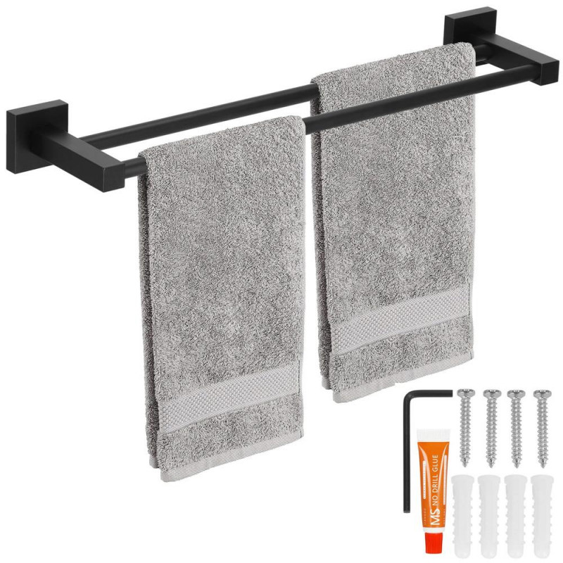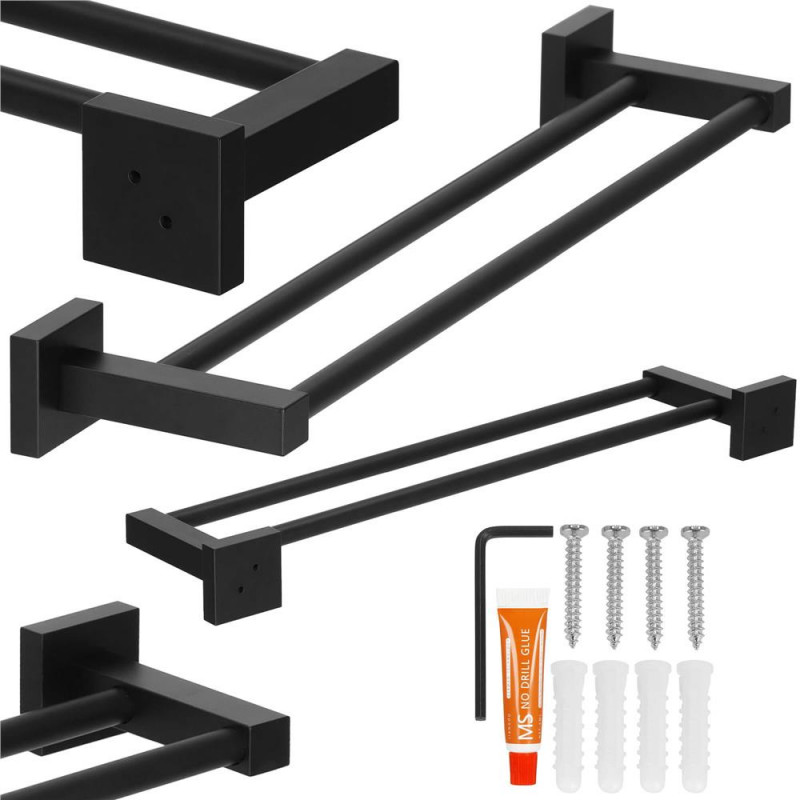 Informatii suplimentare: Include 4 suruburi (28 mm lungime), cheie Allen si lipici Umerasul negru din aluminiu este solutia ideala pentru organizarea unui loc pentru prosoape in baie. Extrem de solid si echipat cu doua brate de depozitare, va fi cu siguranta completarea perfecta pentru amenajarea baii dvs. Nu mai ezitati nici o clipa si descoperiti