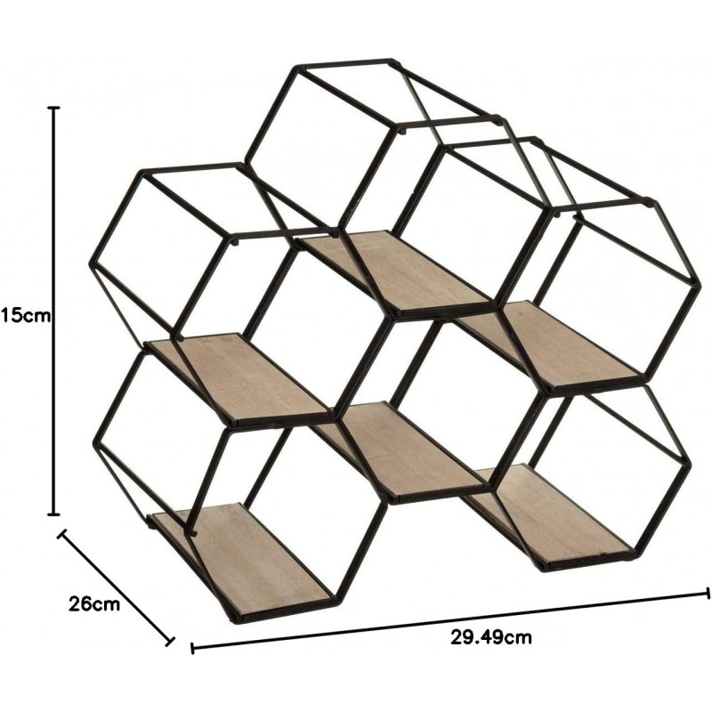 Scurta descriere: Suportul pentru sticle Arty de la Atmosphera imbina designul contemporan cu functionalitatea. Realizat din metal negru cu rafturi din MDF, acesta gazduieste 6 sticle intr-o structura hexagonala eleganta, ideala pentru bucatarie sau dining.