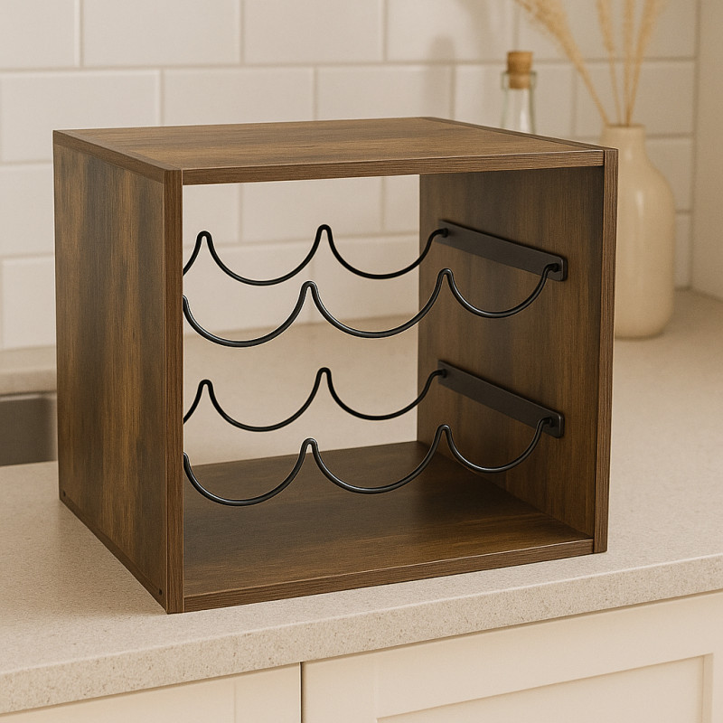 Scurta descriere Suportul pentru vinuri Mix n'Modul de la 5 Five imbina stilul industrial cu functionalitatea modulara. Realizat din panouri rezistente, acest element de mobilier permite stocarea eficienta a sticlelor si poate fi combinat cu alte module din aceeasi colectie pentru configuratii personalizate.