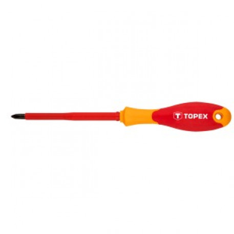Surubelnita cu cap in cruce TOPEX 1000V (ref. 39D477) cu o lungime a lamei de 100 mm si varf PH2. Proiectat pentru lucrul sub tensiune de pana la 1000V. Fabricat din otel crom-molibden de inalta calitate, izolat. Manerul ergonomic din plastic acoperit cu material antiderapant ofera confort si siguranta in timpul lucrului. Marca TOPEX se adreseaza pasionatilor de bricolaj.