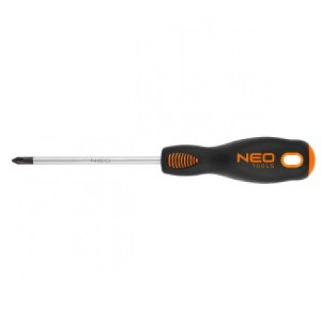 Surubelnita cu cap in cruce NEO PH (ref. 04-006) cu dimensiuni PH1 x 75 mm. Lama surubelnitei este fabricata din otel S2 extrem de rezistent. Capatul de lucru al lamei a fost tratat termic, rezultand o duritate si o rezistenta la indoire corespunzatoare de 56 HRC. Surubelnita are un varf magnetic. Forma triunghiulara a manerului, cu un suport profilat pentru degetul mare, reduce sarcina pe mana in timpul lucrului si faciliteaza obtinerea cuplului optim. Manerul din doua materiale previne alunecarea in mana si este rezistent la substante chimice, uleiuri si grasimi. Calitatea uneltei este confirmata de certificatul TÜV si de garantia de 25 de ani a producatorului. Marca NEO raspunde asteptarilor profesionistilor.