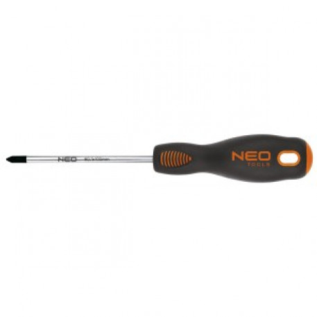 Surubelnita in cruce PZ NEO. Tija surubelnitei este fabricata din otel S2. Varful de lucru a fost supus unui procedeu termic, astfel incat sa dea duritate adecvata si rezistenta la insurubare 56 HRC. Surubelnita detine un varf magnetic. Forma triunghiulara a manerului cu spatele conturat pentru degetul mare reduce sarcina pe de o parte in timpul functionarii si faciliteaza transferul optim de forta. Manerul realizat din doua feluri de materiale previne alunecarea din mana, este rezistent la produse chimice, uleiuri si grasimi. Calitatea instrumentului o confirma certificatul TÜV si garantia de 25 de ani a producatorului. Marca NEO indeplineste asteptarile profesionistilor.