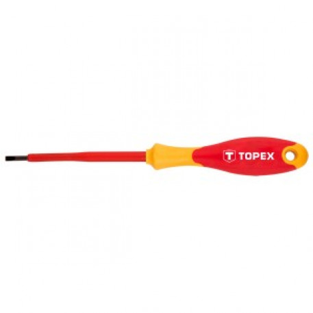 Surubelnita cu cap plat TOPEX 1000V (ref. 39D471) in dimensiunea 3 x 100 mm. Proiectat pentru lucrul sub tensiune de pana la 1000V. Fabricat din otel crom-molibden de inalta calitate, izolat. Manerul ergonomic din plastic acoperit cu material antiderapant ofera confort si siguranta in timpul lucrului. Marca TOPEX se adreseaza pasionatilor de bricolaj.
