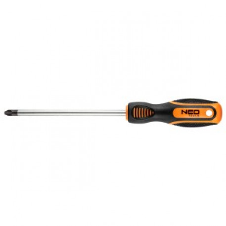 Surubelnita cu cap in cruce NEO (ref. 04-185) utila in lucrari mecanice si bricolaj. Lama lunga de 150 mm este fabricata din otel crom vanadiu durabil, asigurand o durata de viata lunga a sculei. Varful magnetic din otel calit PZ3 face ca unealta sa fie usor de utilizat. Manerul ergonomic din plastic acoperit cu material antiderapant asigura siguranta si confort in timpul lucrului. Marca NEO raspunde asteptarilor profesionistilor.