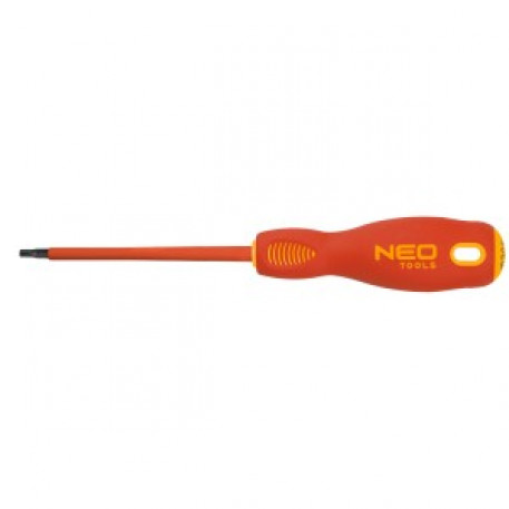 Surubelnita Torx 1000 V, T25 x 125 mm 04-074 de la NEO este o unealta izolata utilizata de instalatorii de instalatii fotovoltaice, caracterizata prin dimensiunea T25. Adaptat pentru a lucra cu o tensiune maxima de 1000 V si fabricat din otel S2 robust. Surubelnita are un maner de forma triunghiulara si un suport pentru degetul mare conturat. Produsele de marca NEO s-au dovedit a fi fiabile de-a lungul multor sezoane de utilizare.