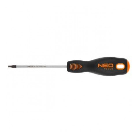 Surubelnita NEO Torx (ref. 04-044) cu dimensiuni T15 x 100 mm. Lama surubelnitei este fabricata din otel S2 extrem de rezistent. Varful de lucru al surubelnitei a fost tratat termic, datorita caruia s-a obtinut o duritate si o rezistenta la indoire corespunzatoare de 56 HRC. Surubelnita are un varf magnetic. Forma triunghiulara a manerului cu suportul profilat pentru degetul mare reduce sarcina pe mana in timpul lucrului si faciliteaza obtinerea cuplului optim. Manerul din doua materiale previne alunecarea in mana si este rezistent la substante chimice, uleiuri si grasimi. Calitatea uneltei este confirmata de certificatul TÜV si de garantia de 25 de ani a producatorului. Marca NEO raspunde asteptarilor profesionistilor.