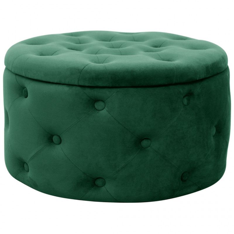 Scurta descriere: Pufa ALIA in nuanta verde smarald aduce un accent elegant si sofisticat in living sau dormitor. Tapiteria din velur este placuta la atingere, iar detaliile matlasate evidentiaza stilul modern. Capacul rabatabil ofera acces la un spatiu generos de depozitare, ideal pentru organizarea obiectelor utilizate ocazional.