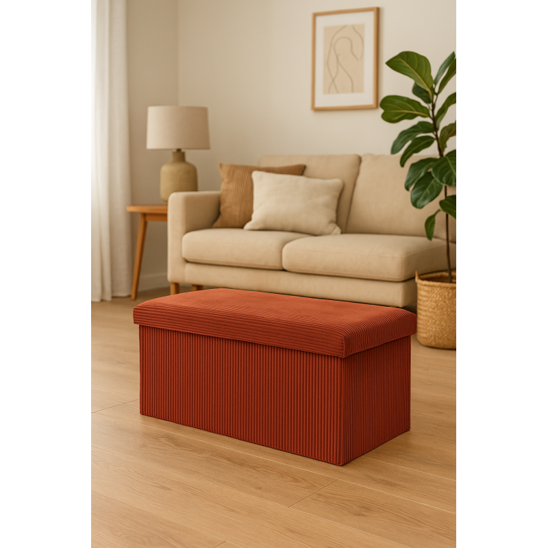 Scurta descriere Taburetul dublu pliabil Arum de la Atmosphera adauga caldura si rafinament oricarui interior. Realizat din material tip catifea cu dungi, in nuanta ambra, combina eleganta cu functionalitatea, oferind un loc confortabil pentru sezut si un spatiu generos pentru depozitare.