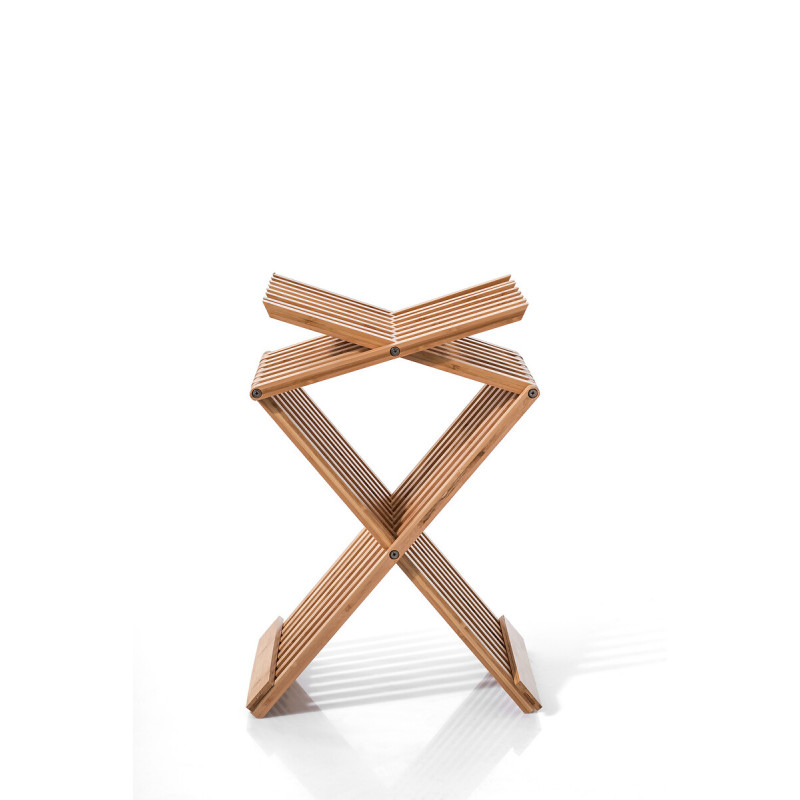 Scurta descriere Acest taburet pliabil din bambus marca 5 Five este alegerea ideala pentru spatii mici sau pentru utilizare ocazionala. Designul sau natural si finisajul maro caramel il fac usor de integrat in orice decor, iar structura solida sustine pana la 110 kg.