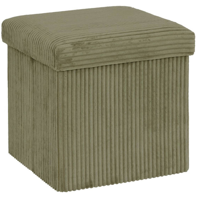 Scurta descriere Taburetul pliabil Arum de la Atmosphera este o alegere practica si eleganta pentru orice interior. Realizat din material tip catifea cu dungi, in nuanta verde kaki, aduce un aer natural si modern incaperii, oferind confort si un spatiu util de depozitare.