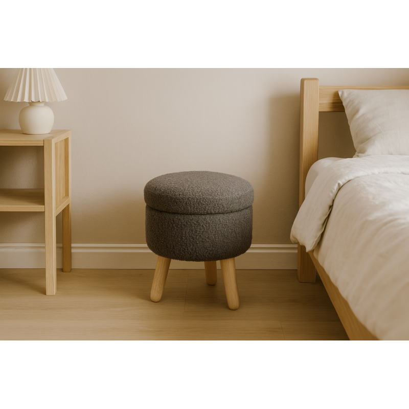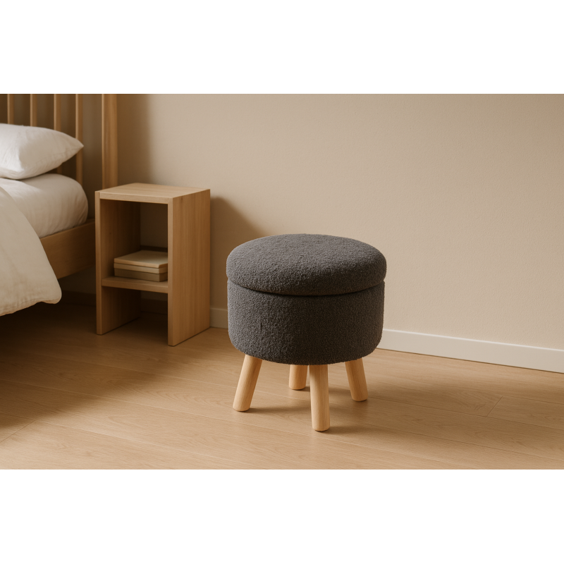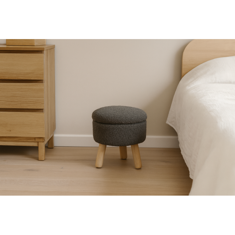 Scurta descriere Taburetul rotund cu tapiterie gri si picioare din lemn imbina eleganta cu functionalitatea. Compact si confortabil, este ideal atat ca scaun suplimentar, cat si ca suport pentru picioare sau decor modern in orice incapere.