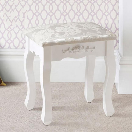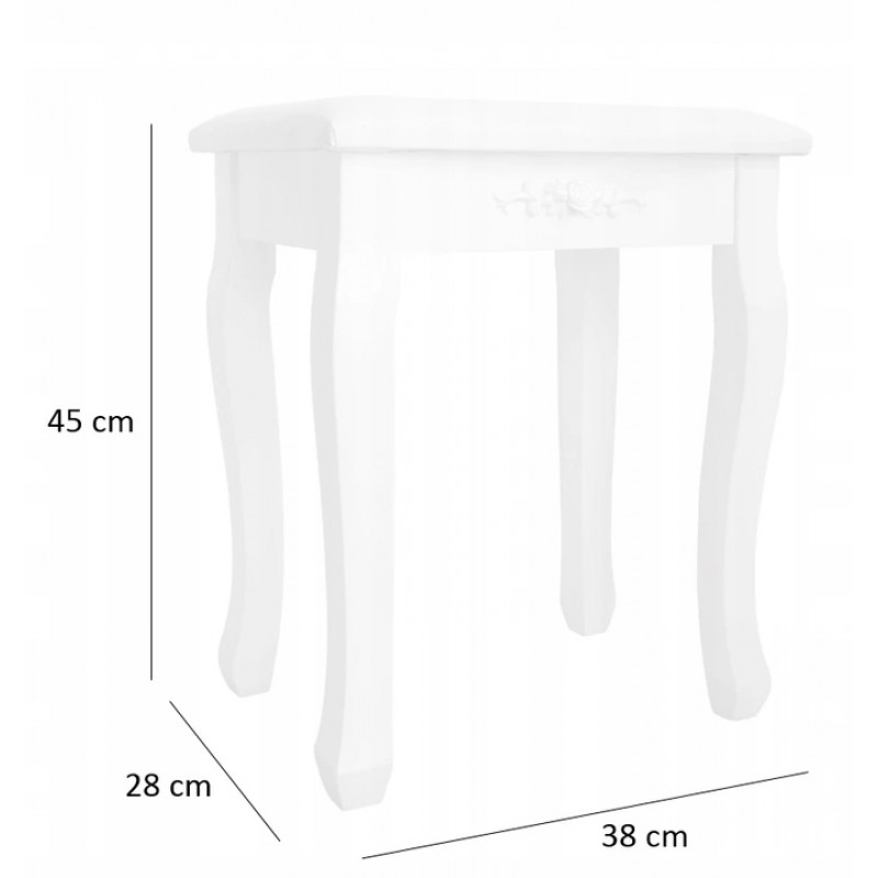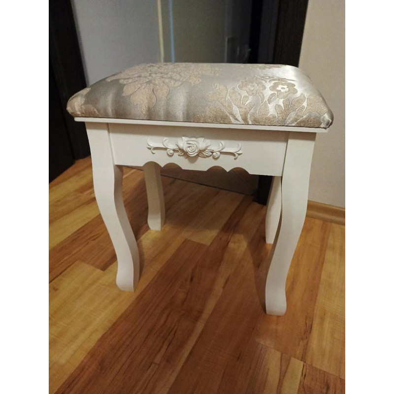 Tapiterie - poliester Un taburet versatil care se potrivește practic oricărei măsuțe de toaletă în stil rustic! Se caracterizează printr-un scaun incredibil de confortabil . Fabricat din lemn masiv, tapițat cu tapițerie moale. Echipat cu patru picioare stabile din lemn. Se va dovedi util nu numai ca scaun, ci și ca o decorațiune interioară excelentă! Utilizarea culorilor deschise îl face foarte elegant. Poate fi folosit ca taburet pentru picioare!