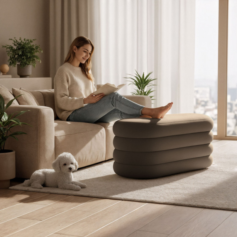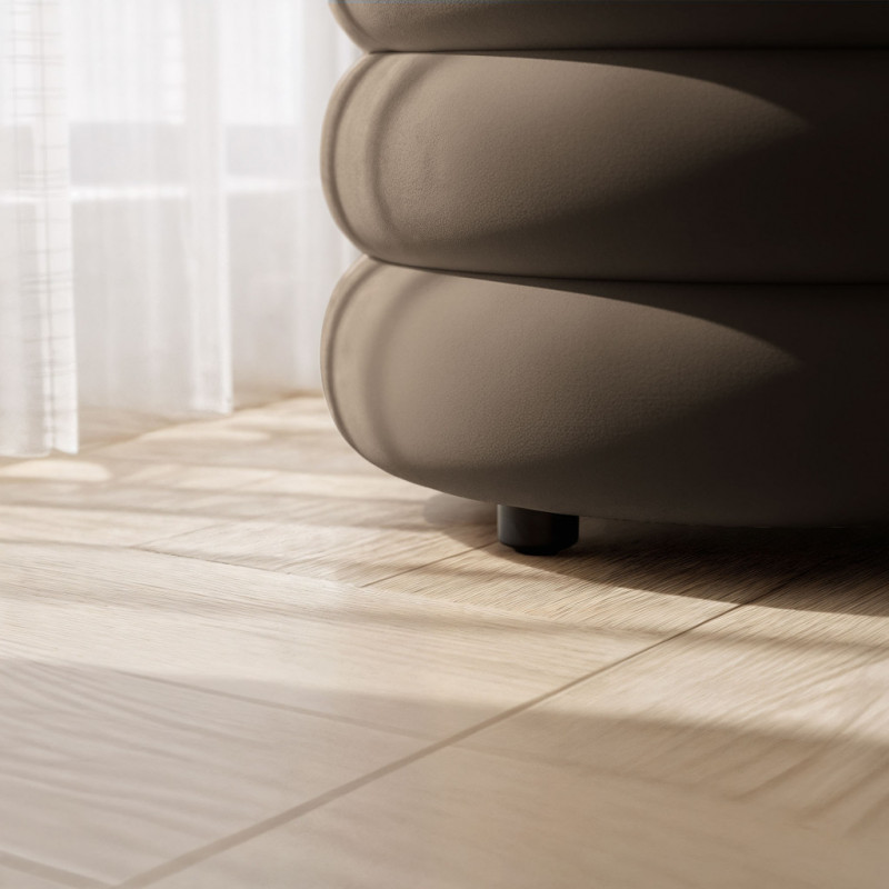 Scurta descriere: Taburetul tapitat Puffo este o piesa eleganta si practica, prevazuta cu sezut rabatabil si spatiu de depozitare interior. Tapiteria din welur moale ofera un aspect rafinat, iar dimensiunea generoasa il face ideal pentru dormitor, hol sau living, atat ca element decorativ, cat si functional.