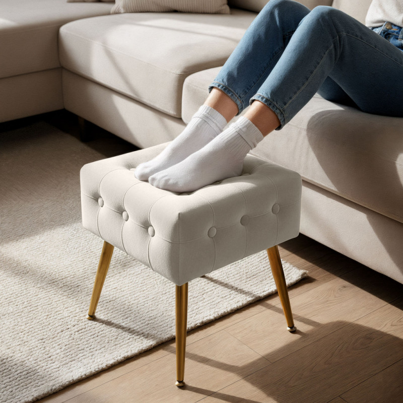 Scurta descriere: Taburetul tapitat Quadra este o piesa compacta si eleganta, ideala pentru interioare cu stil sofisticat. Tapiteria din welur ofera un aspect rafinat si o senzatie placuta la atingere, iar forma patrata il face usor de integrat in living, dormitor sau hol.