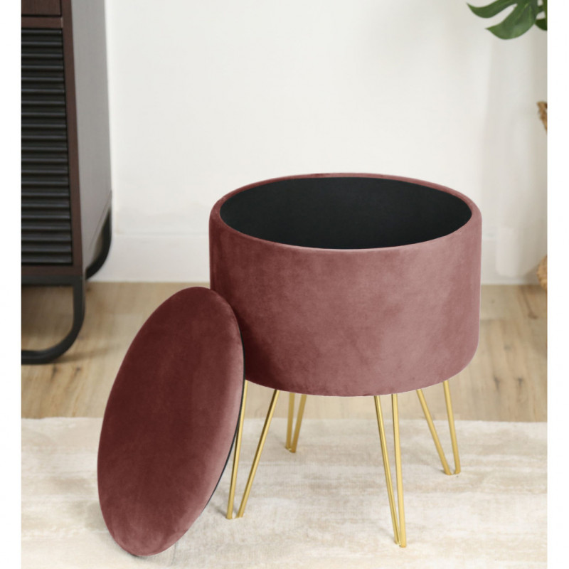 Scurta descriere Taburetul tapitat Lili este un element practic si decorativ, ideal pentru living sau dormitor. Tapiteria din welur ofera un aspect elegant si o senzatie placuta la atingere, iar picioarele metalice aurii adauga un accent modern glam. Spatiul de depozitare ascuns sub sezut permite pastrarea organizata a obiectelor mici, fara a incarca vizual incaperea.