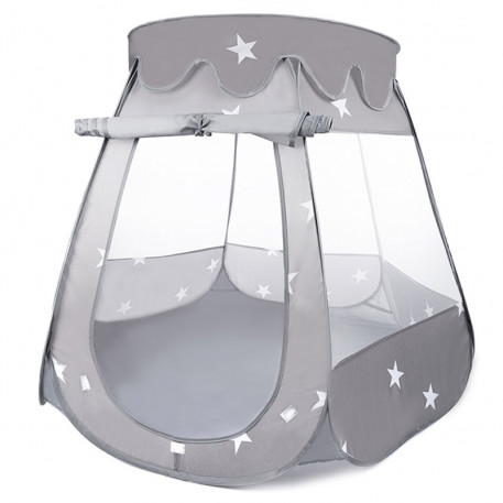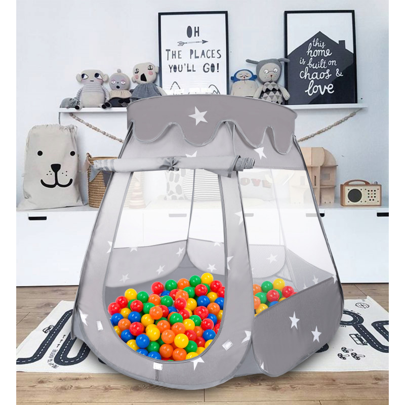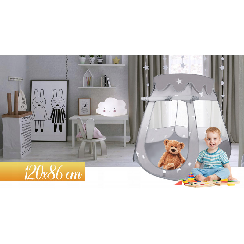 Atentie , bilele din plastic nu sunt incluse in pachet ! Pentru ca nu exista copil care sa nu-si fi construit vreodata un cort sub a carei cupola sa fii luat nastere povesti fantastice asa cum numai imaginatia copiilor o pot crea. Noi ne-am gandit sa dam o mana de ajutor copilasilor, cu acest cort autopliabil . Sunt usor de montat si depozitat (se strang in cateva secunde), sunt stabile (daca sunt montate corespunzator) si au acea capacitate de a starni imaginatia copiilor dand nastere la sute de povesti cu zane, zmei, bucatari, astronauti. Functioneaza bine in aer liber sau pe terasa, dar si in casa. Cortul este usor, astfel incat poate fi transportat cu usurinta.