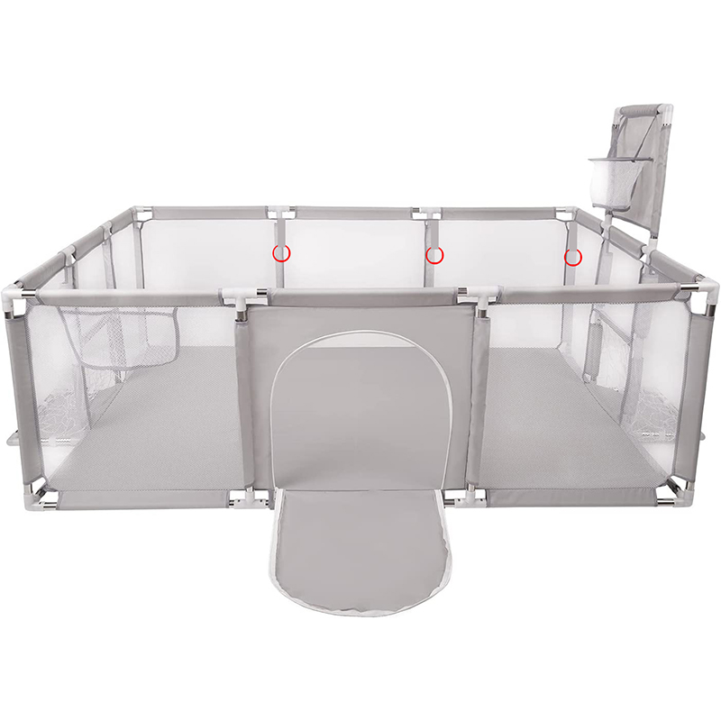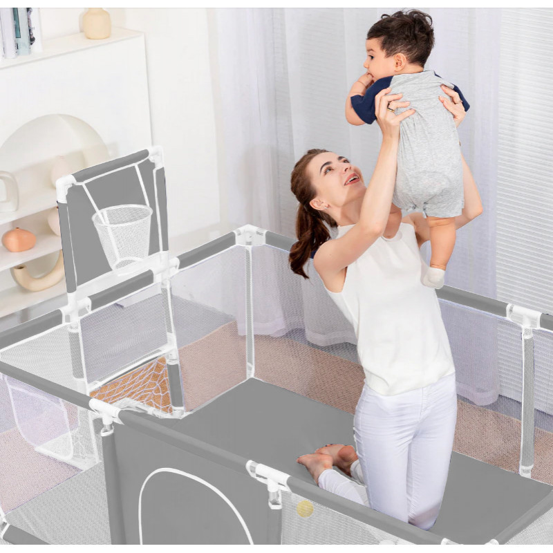 Atentie , bilele din plastic nu sunt incluse in pachet ! Tarcul pliabil, asigura ore de distractie fara sfarsit pentru unul sau mai multi copii. Cu parcul nostru, puteti crea un mediu de joaca sigur pentru copilul dumneavoastra. Vine cu pereti din plasa de ventilatie pentru o vizibilitate usoara si o usa cu fermoar pentru acces usor.Usor de asamblat si pus deoparte sau chiar de luat pentru vacante sau petreceri. In acest fel, veti avea intotdeauna o zona de joaca sigura. Copilul dvs. mic poate exersa statul in picioare si tararea in parc. El/ea poate sa se traga singur(a) si sa exerseze pasii in timp ce se joaca cu marginile din jur, cosul de baschet ofera un puls de distracte.
