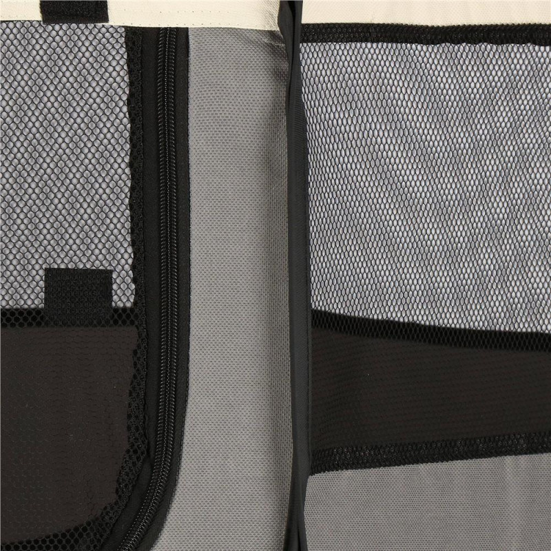 Principalele avantaje: Il poti desface si asambla in cateva secunde Utilizare universala Material rezistent la pete si usor de curatat Circulatie completa a aerului Peretii din plasa actioneaza ca plasa de tantari Material usor, durabil, solid Pentru uz interior si exterior Animalul de companie isi poate observa liber imprejurimile Culori universale discrete si design interesant Acoperis detasabil, acces mai usor la animalul dvs. de companie Usor de transportat Intr-unul dintre peretii tarcului exista o intrare prin care animalul poate intra si iesi liber. Intrarea in tarc este din plasa si se inchide cu fermoar si are velcro care permit sa fie lasat deschis. Partea superioara a husei este, de asemenea, echipata cu fermoar, datorita caruia putem crea un adapost sigur pentru animalul dvs. de companie. Mai mult, capacul care se deschide astfel ne faciliteaza accesul animalului de companie. Greutatea redusa si dimensiunile mici dupa pliere permit depozitarea si transportul comod al tarcului. Il poti lua cu usurinta la un picnic in parc sau intr-o calatorie lunga. Utilizarea materialelor de inalta calitate asigura o durabilitate ridicata a produsului. Un avantaj in plus va fi materialul usor de curatat din care a fost realizat tarcul de joaca.