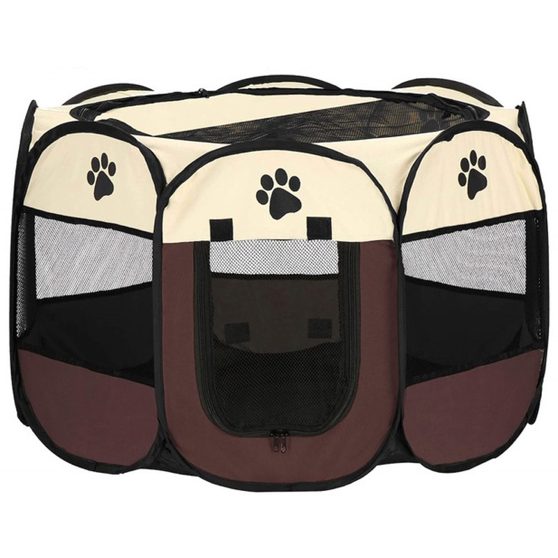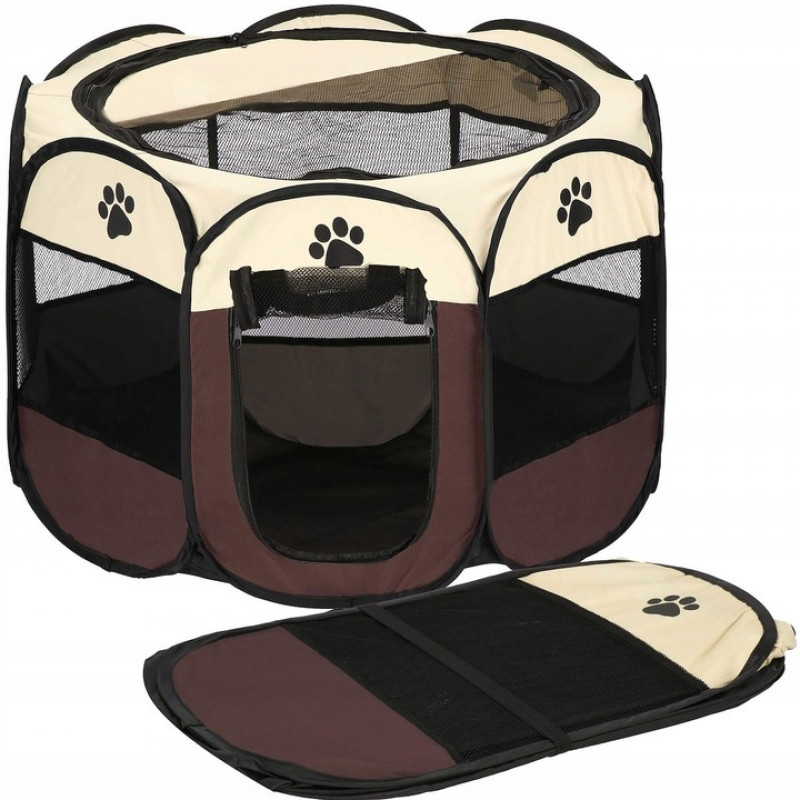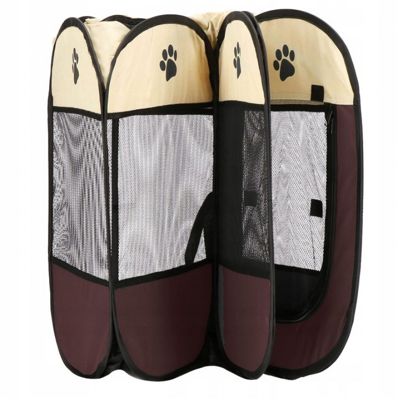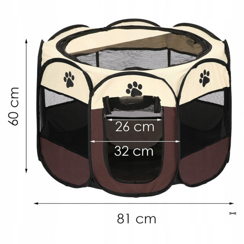 diametrul capacului superior (detasabil): 60 cm Tarc pliabil, textil, realizat pe plan octogonal, conceput pentru caini, catei, pisici si animale mici. Tarcul este o solutie ideala pentru proprietarii de animale de companie, mai ales atunci cand este nevoie de a separa un spatiu sigur pentru animalele dvs. de companie. Produsul poate fi folosit atat acasa, cat si in aer liber.