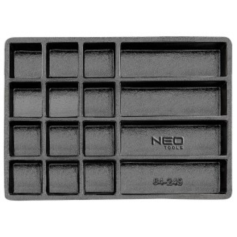 Tava plastic 16 compartimente Neo, (nr ref. 84-249) se introduce in dulapuri profilate Neo 84-221 si 84-222 pentru suruburi, piulite si alte obiecte mici. Din polipropilena dura si durabila. Utile in fiecare atelier. Calitatea instrumentului este certificata de TÜV si de garantie de 25 de ani a producatorului. Marca Neo indeplineste asteptarile profesionistilor.