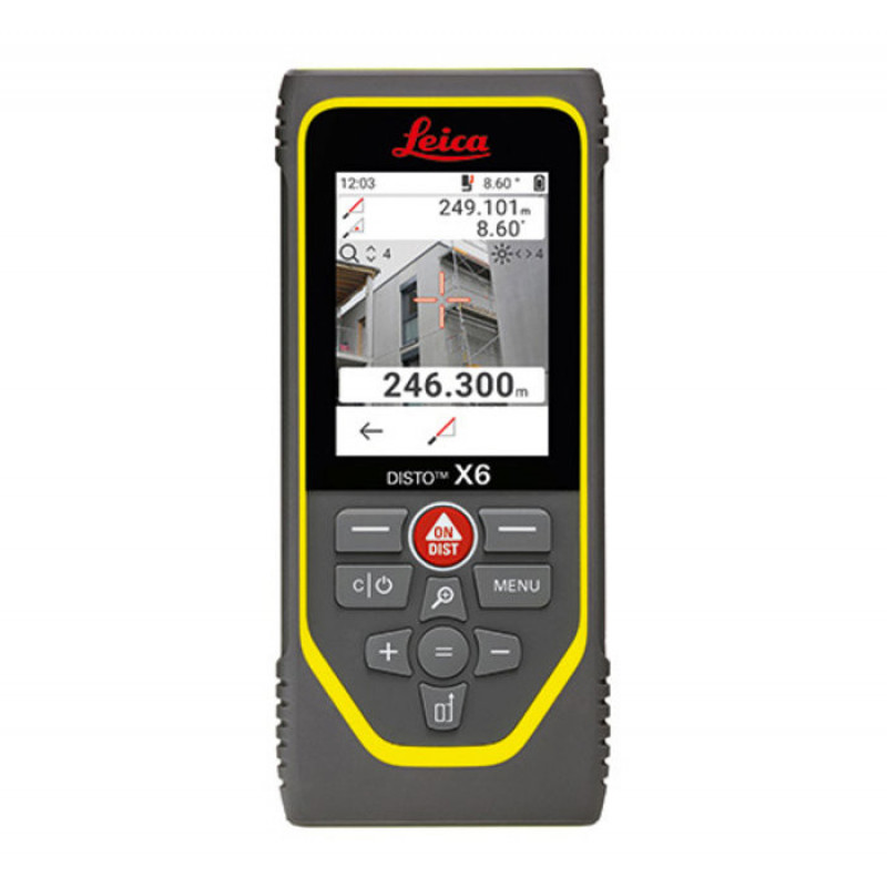 Leica DISTO™ X6, cu carcasa sa extrem de robustă, clasa de protecție IP65 și sticlă de afișare rezistentă la zgârieturi, este potrivită în special pentru utilizarea grea pe șantier. Combinația perfectă dintre opțiunea de căutare digitală, funcționarea ergonomică cu ecran tactil și buton suplimentar de măsurare pe lateral, precum și funcționalitatea ridicată, garantează că fiecare sarcină de măsurare poate fi finalizată rapid și eficient. Rezultatele pot fi apoi trimise și procesate în continuare în aplicația DISTO™ Plan.