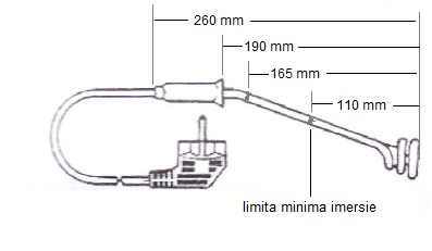 Termoplonjonul se introduce in apa. Nivelul apei trebuie sa fie peste semnul minim de pe termoplonjon. In cazul in care semnul nu este vizibil, apa trebuie sa acopere bucla cu cel putin 5 cm, dar nu trebuie sa ajunga la maner.
