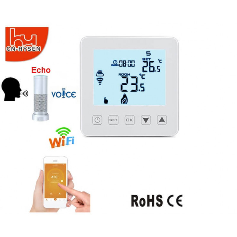 - Termostatul HY08WE-4-WIFI utilizand functia avansată a controlului microcomputerelor, este folosit pentru controlul temperaturii incăperilor prin intermediul senzorilor de temperatura de precizie (ambient si pardoseala) si comparand cu temperatura setată anterior, pornind /oprind echipamentul de incălzire, mentinand automat temperatura camerei indiferent de sursa de caldură.