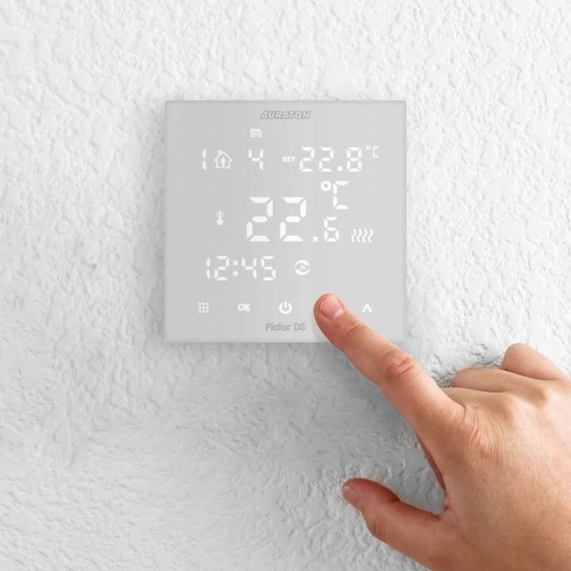 Pictor DS este un termostat electronic încastrat, cu un panou tactil modern,