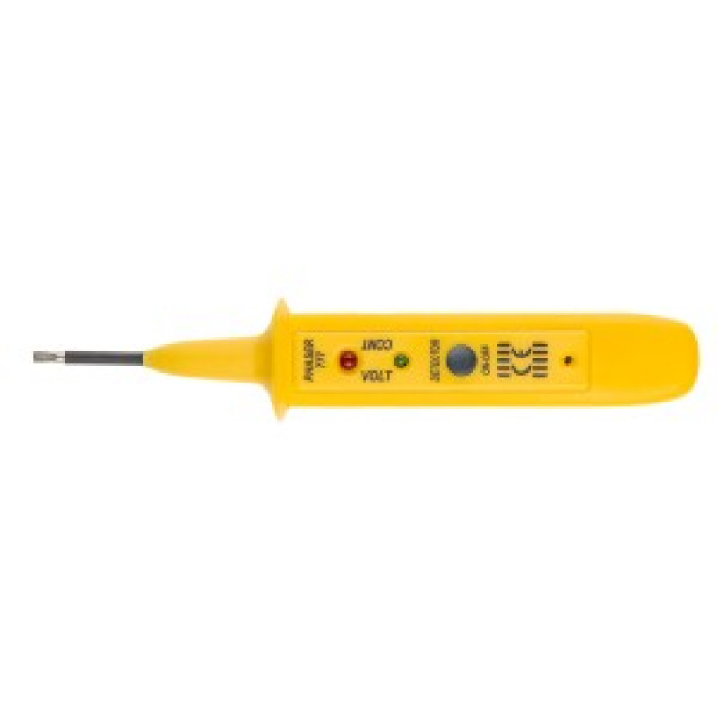Tester instalatie electrica cu lungimea de 175 mm. Permite la detectarea fluxul de tensiune in intervalul de 3 - 5000 V, izolat. Cu sensibilitate reglabila de detectare si semnalizare optica si acustica. Testerul pentru o utilizare universala, si anume, pentru a detecta tensiune DC (pana la 60V), detectarea intreruperii circuitelor, verificare sol, fixarea cablurilor intr-un manunchi. Utilizat pe scara larga pentru a verifica instalarea curentului, echipamentelor electrice, circuitelor electronice.