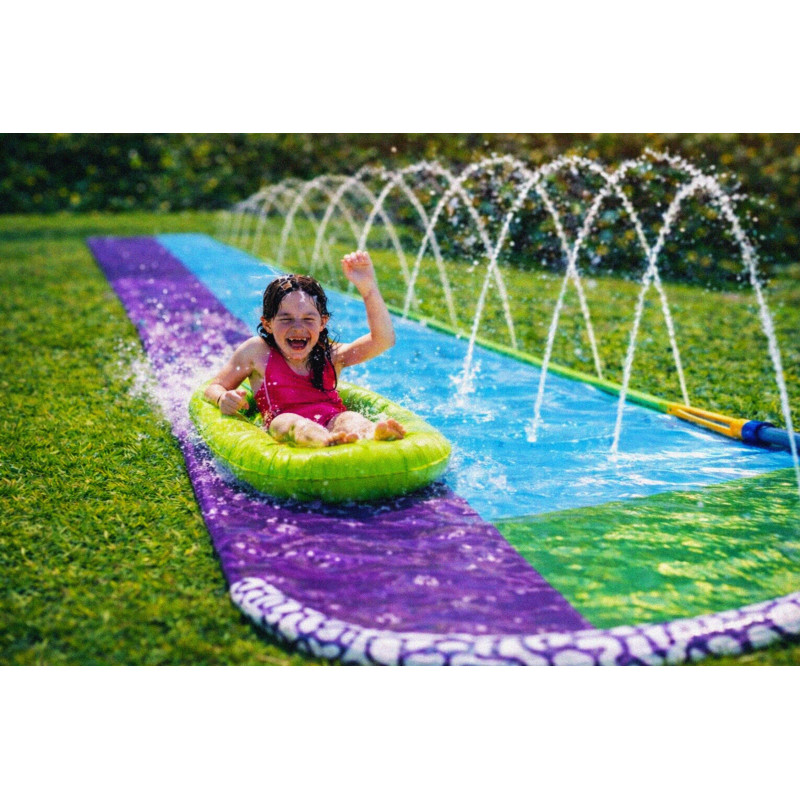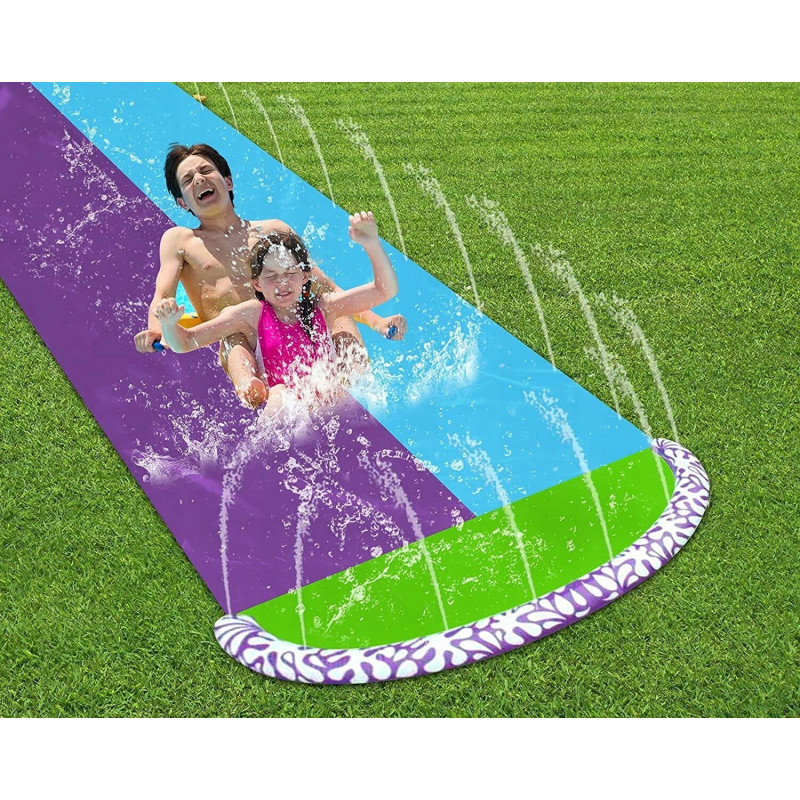 Scurta descriere: Toboganul de apa dublu este ideal pentru distractie in zilele calduroase, oferind doua piste pentru alunecare simultana. Perfect pentru intreceri intre copii, acesta este prevazut cu jeturi de apa laterale care asigura o alunecare lunga si rapida. Se monteaza usor si este potrivit pentru utilizare in gradina.